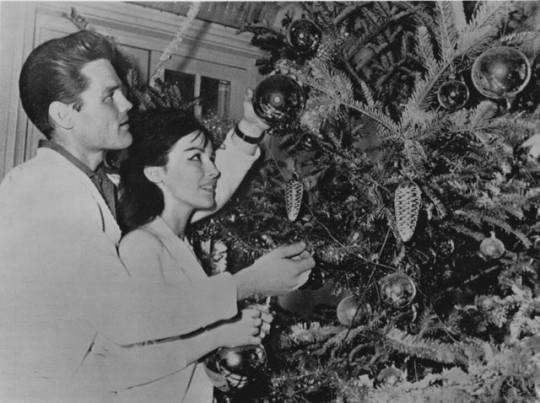 Chet Baker helps his girlfriend, Carol Jackson adorn their Christmas tree in Lucca, Italy December 20 1961.