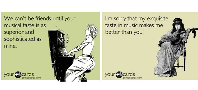 Restano fuori da questa classificazione tutti quelli che hanno ottimi gusti, ma non necessariamente uguali ai nostri. Sono le persone con cui ci confrontiamo volentieri, con le quali possono nascere discussioni assolutamente produttive, e che spesso ci spingono ad aprire la mente (e le orecchie) a generi che non fanno parte del nostro background.