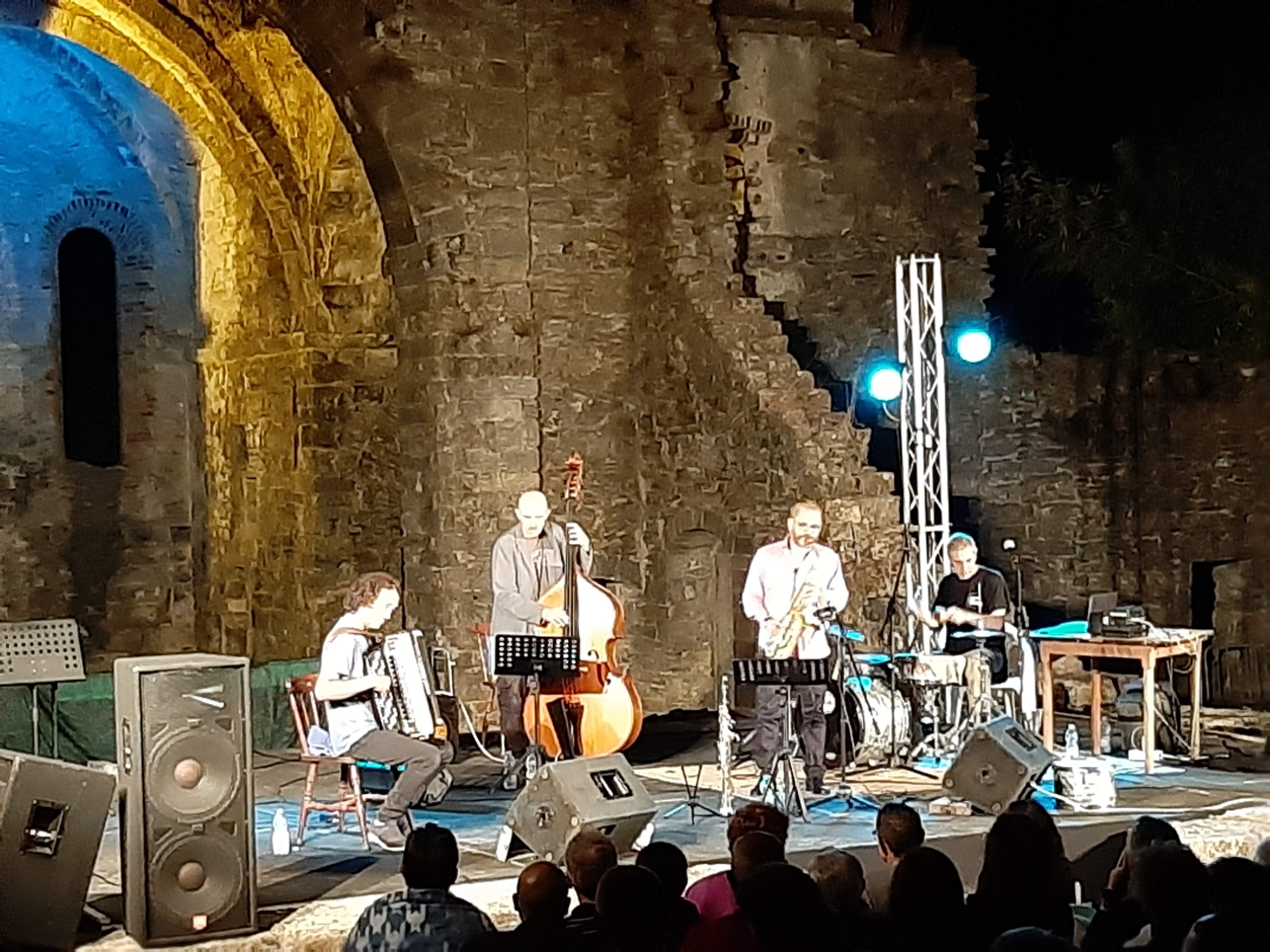 Per il secondo appuntamento del cartellone del Festival Valle Christi di Rapallo è andato in scena un film speciale. Film in musica, naturalmente, protagonista il quartetto di Rosario Giuliani, con Enzo Pietropaoli, Luciano Biondini e Michele Rabbia, ed il progetto dedicato alla rielaborazione di celebri colonne sonore del cinema italiano, in particolare di Ennio Morricone e Nino Rota. Ideato come un duo sax/fisarmonica per un tour in Israele che ha riscosso grande apprezzamento, poi evolutosi in quartetto che, nella configurazione di Rapallo ha inciso nel 2016 il cd omonimo per Via Veneto jazz/ Jando, “Cinema Italia” si compone in parti uguali di rispetto per le parti tematiche e melodiche di soundtracks tratte da film di Federico Fellini (La dolce vita, La strada, Otto e mezzo), di Giuseppe Tornatore (Nuovo cinema paradiso) e Sergio Leone (C’era una volta in America) qualche composizione originale (Bianco e nero di Giuliani, introdotta qui da un assorto solo di sax) , e di voglia di giocare, sperimentare ed improvvisare quasi a forgiare una nuova veste , adatta al palcoscenico del jazz, per quelle musiche che tutti abbiamo ascoltato una o più volte. Un aspetto quest’ultimo, reso evidente in diversi momenti del concerto, dal solo di Rabbia con i suoi mille oggetti sonori che ha introdotto “Deborah’ song” al lungo medley che riuniva varie parti tematiche di 8 e 1/2 , uno dei momenti più riusciti del concerto, con un divertente dialogo ironico fra il contrabbasso di Pietropaoli ed il sax di Giuliani. Il quale, in questa veste, nasconde un poco i panni dell’hard bopper per dare spazio al melodista, in efficace gioco di coppia con la fisarmonica di Biondini, pronta ad esaltare le componenti più emotive dei brani con assoli di grande intensità. Completano l’insieme il contrabbasso duttile di Pietropaoli e l’istrionico Rabbia che riesce anche a far suonare una bottiglietta di plastica o un asciugamano. Set non poco afflitto dalla grande umidità della location, suggestiva ma dal clima implacabile, che costringeva i musicisti ad asciugare di frequente gli strumenti, che si è concluso con il bis di Biondini “ What is there what is not”, in linea con le atmosfere cinematografiche della serata. Prossimo appuntamento il 14 agosto con Emanuele Cisi ed il suo “No eyes” dedicato a Lester Young.