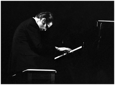 Bill Evans on stage at the Newport Jazz Festival, July 1969. Photo by Tom Copi