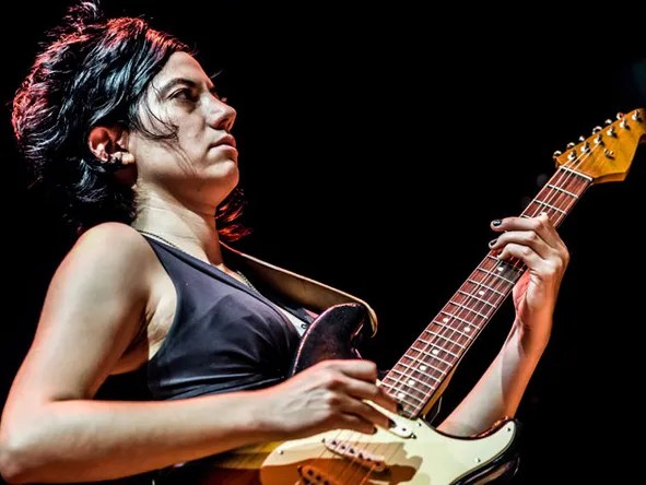 Studiare con il maestro di chitarra d’avanguardia Fred Frith ha formato l’approccio di Mendoza alla musica impegnativa, ma le sue improvvisazioni attingono a tutti gli elementi del suo ricco background, inclusa la musica classica e le radici blues. Foto di Peter Gannushkin