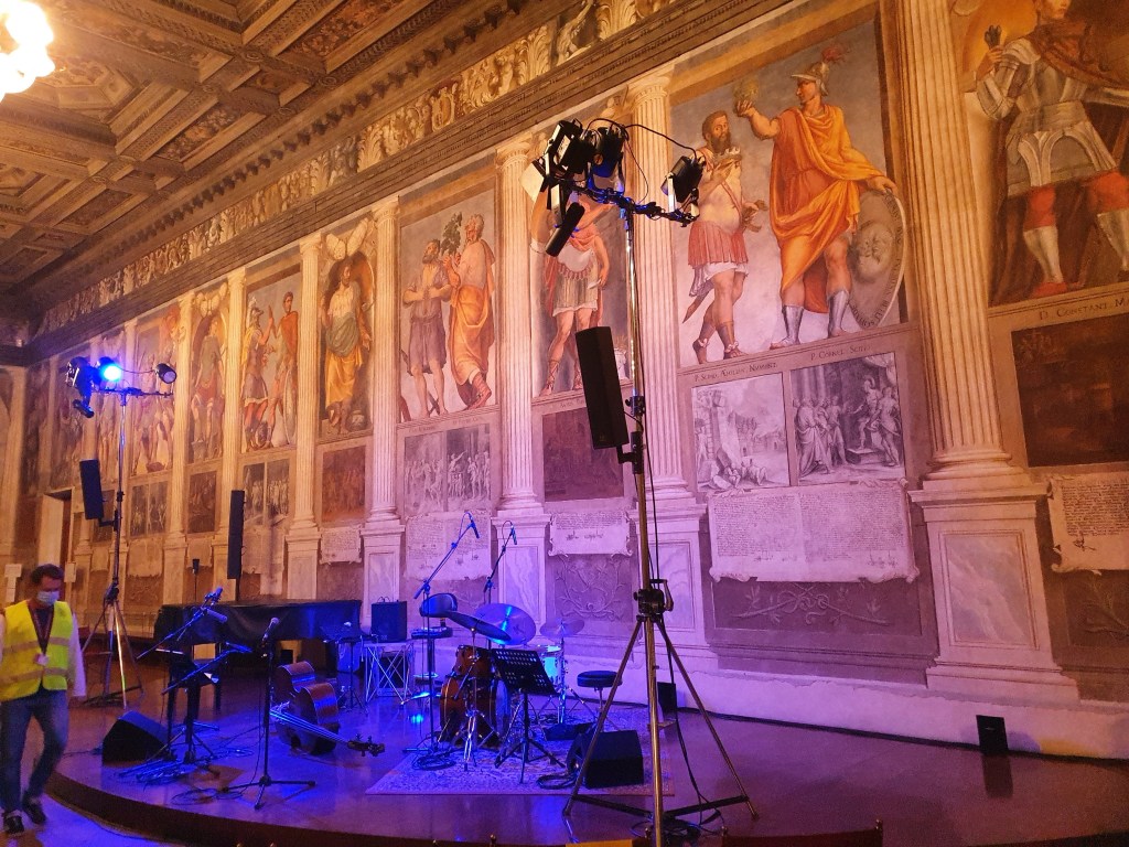 A cominciare proprio da quella del 17 novembre: siamo nella fastosa Sala dei Giganti del Palazzo Liviano, direi quasi ‘espugnata’ grazie alla tenacia dell’infaticabile Gabriella Piccolo Casiraghi, anima del Festival: non c’è una sedia libera di quelle consentite dal distanziamento. Dopo un prologo di cui è doveroso parlare in altra sede, siamo in attesa del trio di David Murray, con Brad Jones al basso ed Hamid Drake alla batteria.