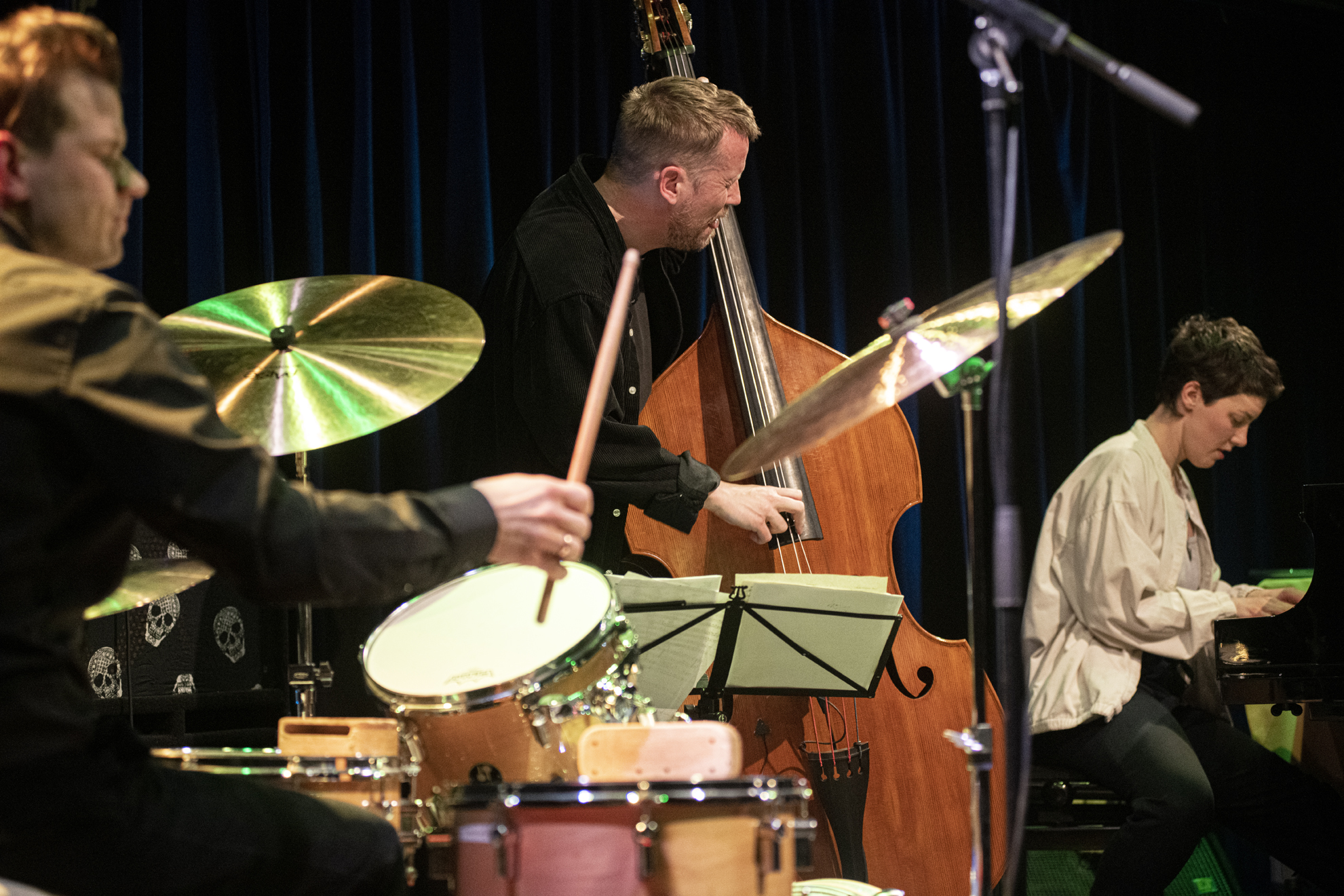 E poi ancora, il Cut-Trio (Tanja Feichtmair alto sax, Cene Resnik sax tenore, Urban Kušar batteria e percussioni, giovani promesse della scena improvvisativa austriaca la prima, e slovena i secondi), e, per finire, il trio esplosivo di John Dikeman, statunitense di stanza ad Amsterdam e sassofonista di punta della nuova scena free olandese, Oliver Schwerdt – già sodale di Günter Baby Sommer –, al piano, e di nuovo Christian Lillinger, in un set altamente esplosivo a degna conclusione di una serata decisamente adrenalinica.