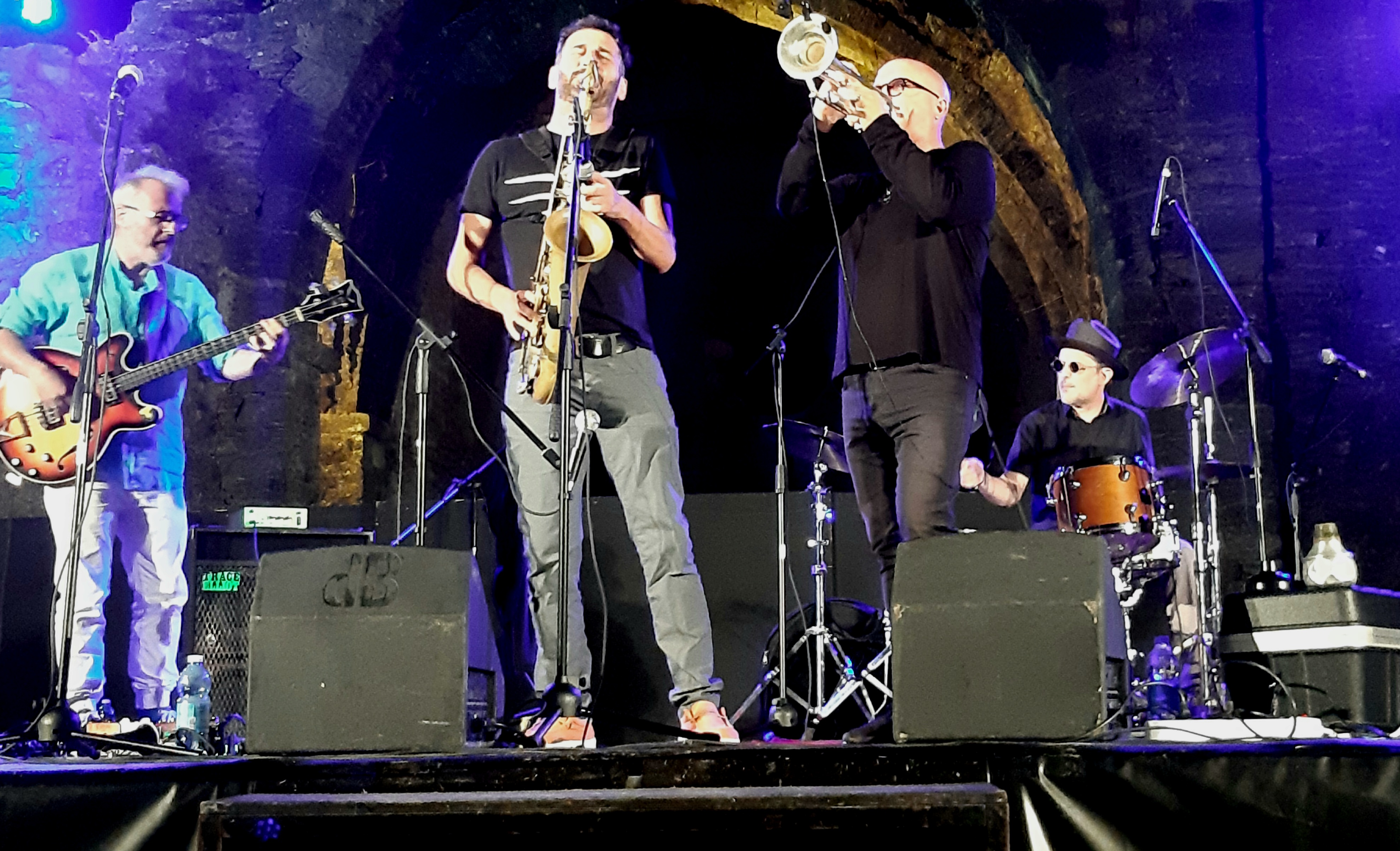 Doppia cartolina per raccontare il week end pieno di jazz che ha animato il golfo del tigullio, con due appuntamenti in grado di riscattare mesi interi di penuria musicale. A Rapallo presso il complesso monumentale di Valle Christi giovedi 11 era in programma il secondo appuntamento del cartellone jazz di un programma curato da Omnia Eventi, che attraversa luglio ed agosto con spettacoli musicali, teatro e cabaret. Invitati e presentati con la consueta passione e competenza dal direttore artistico Bruno Guadamagna, Francesco Bearzatti, Giovanni Falzone, Danilo Gallo e Zeno De Rossi, ovvero il Tinissima quartet, hanno fatto rivivere le gesta dell’eroe mascherato tramite la riproposizione della suite “Zorto” , ultimo degli eroi civili a ricevere un lavoro dedicato, in una serie che comprende Tina Modotti , ispiratrice della ragione sociale, Malcom x, Thelonius Monk e Woody Ghutrie. Uno dei luoghi comuni del jazz è che ogni assolo deve raccontare una storia; nel caso di Tinissima tutta la musica è improntata ad una narrazione identificata a priori, e la verace espressivita’ dell’interpretazione non fa che amplificare un messaggio nel quale si mescolano, insieme ad un meeting pot di influenze musicali, ideali umanitari e valori sociali. Attraverso gli otto movimenti di Zorro il quartetto si muove metaformicamente assumendo,di volta in volta, le vesti di un’orchestrina mariachi, di una marchin’ band di New Orleans, di un combo free jazz o di una band punk new wave, legando il tutto tramite un’intesa ormai collaudatissima dopo dieci anni di vita comune. Colpisce l’esclusiva verve della front line dei due fiati con Falzone e Bearzatti sincronici nei temi e scatenati nei dialoghi solisti sax /clarinetto e tromba. Ma va sottolineato il ruolo del basso di Danilo Gallo, che sostiene con autorevolezza tutte le metamorfosi del gruppo e si lancia in un vero tour de force nel trittico finale “Lolita/Tornado/Il trionfo di Zorro” con un’esplosione di groove rock che ha conquistato la platea. infine il fuoco della batteria di Zeno De Rossi che brucia sotto la apparente seraficita’ del musicista. ZORRO gira da tempo sui palchi jazz della penisola, ma il consiglio per i direttori avveduti che non avessero ancora provveduto, è di seguire l’esempio di Guardamagna ed accaparrarsi questo concerto per il proprio festival di vero jazz.