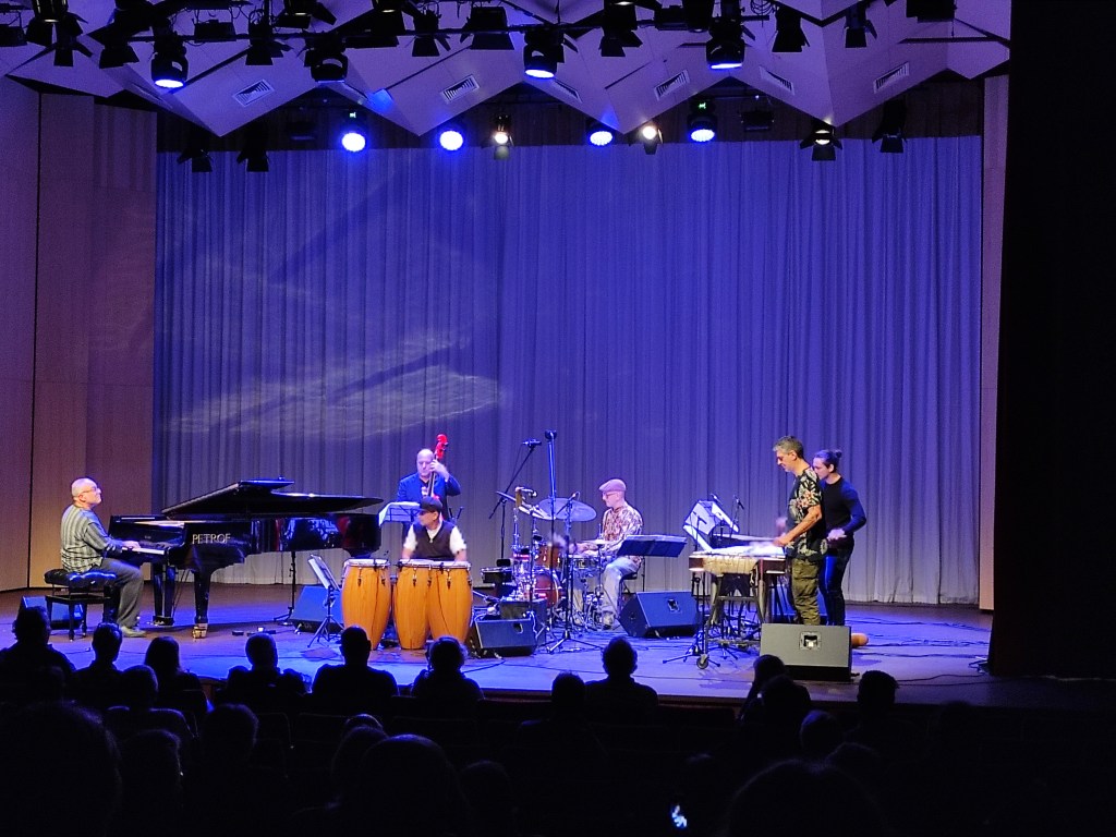 Iniziamo dal concerto mattutino dei Guantanamo, il sestetto di Fabrizio Puglisi che coniuga la propria proposta musicale all’insegna dell’afro-cubanismo senza però risolvere il tutto in una orgia percussiva fine a se stessa, ma calibrando e integrando alla perfezione linee melodiche e ritmi percussivi. Un set divertente, con richiami a temi immortali del jazz dei grandi maestri, da una frizzante versione di Ezz-thetics di George Russell, alla calibrata Directions di Joe Zawinul, per finire con la magnifica Un poco loco di Bud Powell. Nel mezzo, temi del leader che riflettono l’affiatamento di un gruppo che esiste da più di dieci anni.