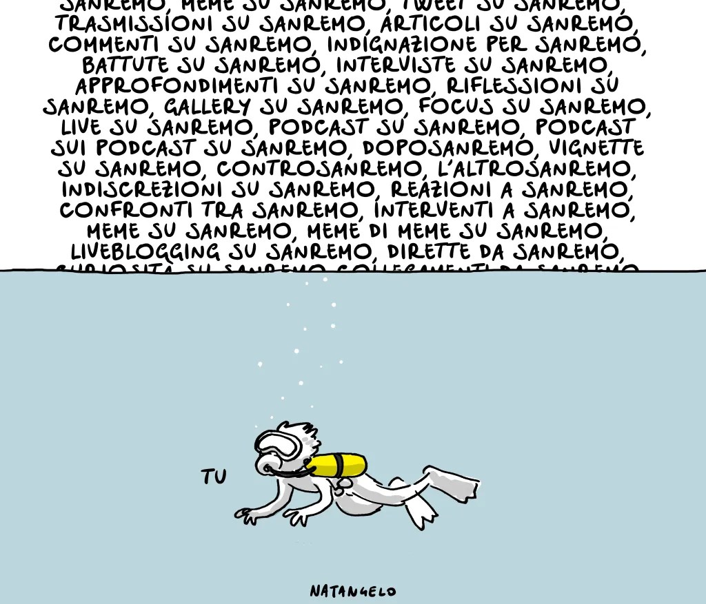 Ormai il ridicolo e il cattivo gusto hanno superato ogni più incredibile confine, da ultima la figuraccia internazionale con il tira e molla sul collegamento con Zelenski. Oggi l’orrore ha raggiunto il culmine nell’edizione delle 13,30 del telegiornale di Rai1: titoli con le tremende immagini del terremoto della Turchia e, senza vergogna alcuna, immediatamente la linea a Sanremo per le banalità più indecenti per ammansire un pubblico già narcotizzato.