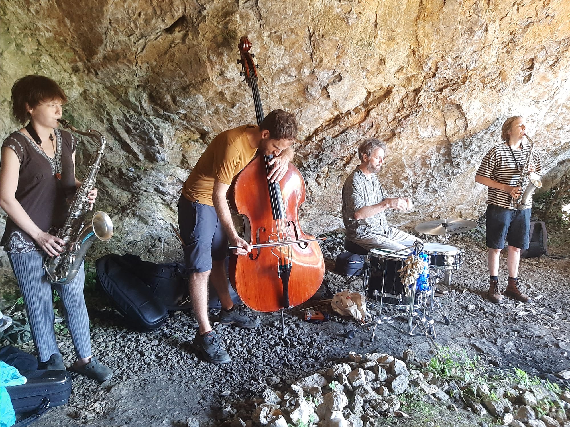 Il sabato mattina prevede la camminata all’alpe Steinalm con il quartetto di Zoh Amba. Musicisti con strumenti sulle spalle, aiutati anche da noi del pubblico, in un contesto di natura splendida . Poco più di un ora di salita con due performance in due punti panoramici del percorso. Passeggiata magnifica e musica assolutamente all’altezza della bellezza visiva.