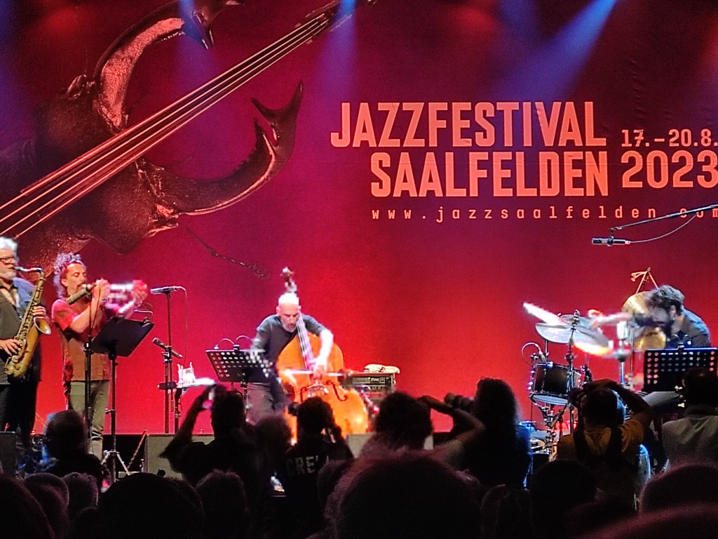 Se le tre piccole performance in quota del quartetto di Zoh Amba mi erano parse notevoli, il concerto serale è stata una apoteosi delle qualità dei singoli e del gruppo. Impressionanti le due ragazze, Zoh e Anna Hogberg, due persone minute e apparentemente miti e inoffensive, ma che, una volta imbracciati i rispettivi strumenti, diventano delle furie scatenate. Zoh ricorda nella potenza della emissione il compianto Peter Brotzmann, solo che fisicamente è uno scricciolo a differenza del sassofonista tedesco che era di notevole corporatura. Quando poi emette un suono vibrato, l’accostamento ad Albert Ayler è spontaneo e immediato. Ma le due sassofoniste non producono solo fischi, schiocchi, barriti e impressionanti borborigmi. Quando la tensione cala, la capacità melodica è coinvolgente, una limpida sorgente di assoluto valore. Fantastico l’apporto di Billy Martin, un batterista duttile e fantasioso. Una bella sorpresa il contrabbassista Lukas Kranzelbinder, che nell’ultimo brano accompagna deliziando con il douss’gouni. Magnifico.
