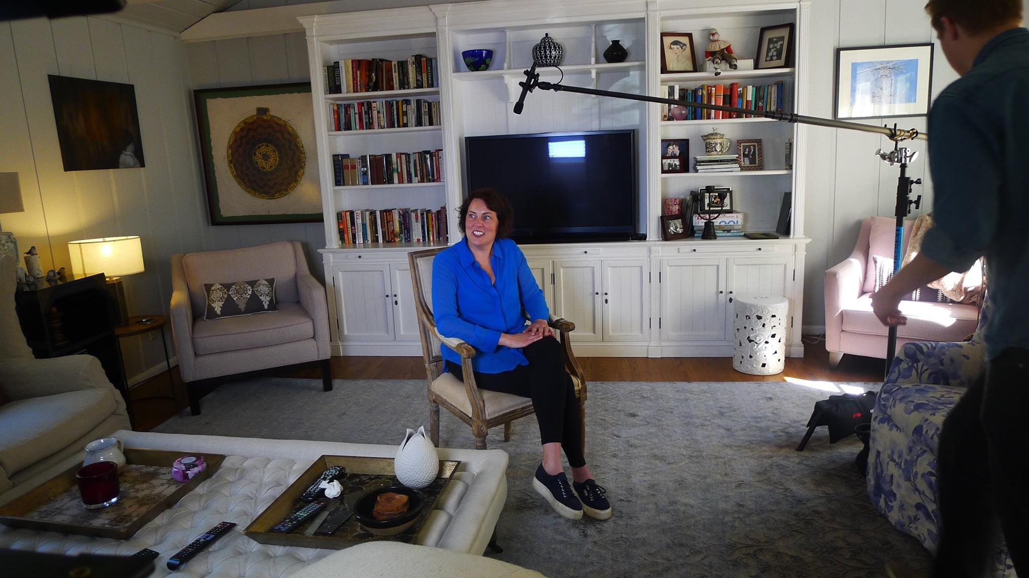 Il pomeriggio prima dell’intervista, una amica mi ha portato a fare un’escursione nel Topanga Canyon per schiarirmi le idee e caricarmi di energia. Le ho inviato un ringraziamento mentre andavo alle riprese: “Il tentativo di ricordare tutto il materiale del mio libro di oltre dieci anni fa mi ha resa nervosa, ma a Topanga mi sono riconnessa con la mia impostazione originale per il libro. Mi ha dato un po’ di conforto e fiducia durante il colloquio.” Spero che si veda.