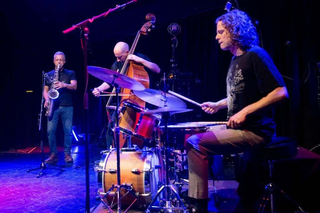 Un altro grande maestro del ritmo, Günther “Baby” Sommer, lo si è potuto invece ascoltare nella seconda serata festivaliera, in una veste tanto virtuosa quanto irriverente, a lanciare scanzonate sfide ritmiche ad un ulteriore gigante del jazz europeo, Barry Guy, come pure al pianista germanico Oliver Schwerdt, titolare del trio – un trio che, dopo il debutto con il doppio “One for My Baby and One More for the Bass” (Euphorium, 2020), ha attinto qui al nuovo lavoro “Fucking Ballads” (Euphorium, 2024). Concerto divertente quanto solido, che àncora una volta di più artacts ad una tradizione – come la intendiamo noi – che sa guardare avanti senza dimenticare le proprie radici, ed è un gran bel sentire.