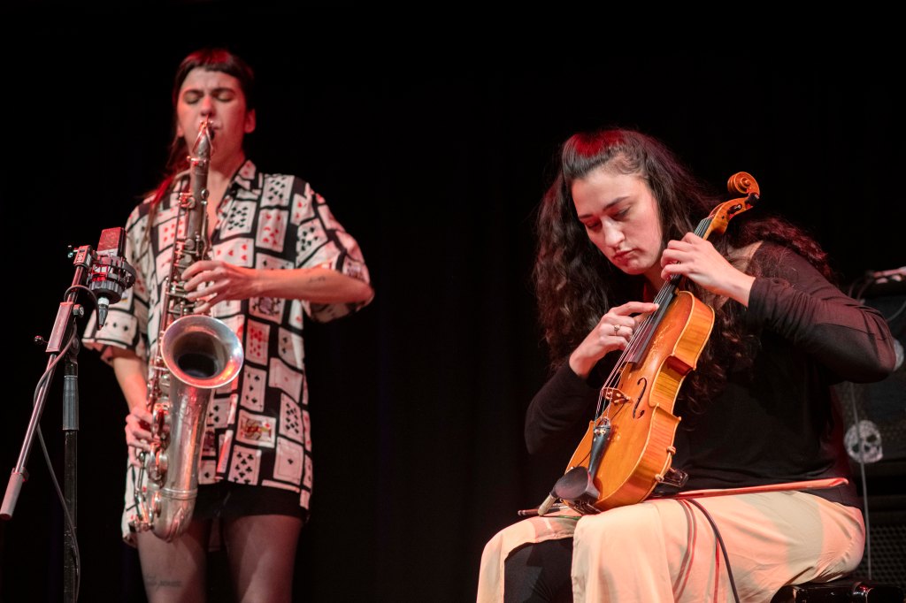 Ingrid Schmoliner, dal canto suo, è stata protagonista di un suggestivo concerto per organo nella principale chiesa di St. Johann (“I Am Animal”), mentre non sono mancati all’interno del festival ulteriori sguardi su quanto le musiciste abbiano da dare alla musica improvvisata e sperimentale: con il duo australiano-tedesco della vocalist Casey Moir, ora di stanza in Svezia, e la violoncellista di formazione classica, ma ben presto virata sulla contemporanea Elisabeth Coudoux, e ancor più nel quartetto capitatano dalla giovane sassofonista argentina Camila Nebbia, con la fisarmonicista newyorchese Andrea Parkins (entrambe attualmente a Berlino), la vocalist svedese Barbara Togander e la violista Johanna Mattrey, di nuovo dalla grande mela. Un nuovo quartetto alla sua seconda performance pubblica, ma che ha dato ottima prova di sé, muovendosi con coesione tra una varietà di chiaroscuri e di piani sonori, dissonanze e improvvisazione radicale, contemporanea, effetti mai fini a sé stessi, e in cui emergono in particolare il lavoro sul suono di Parkins e la convincente veemenza di di Nebbia.