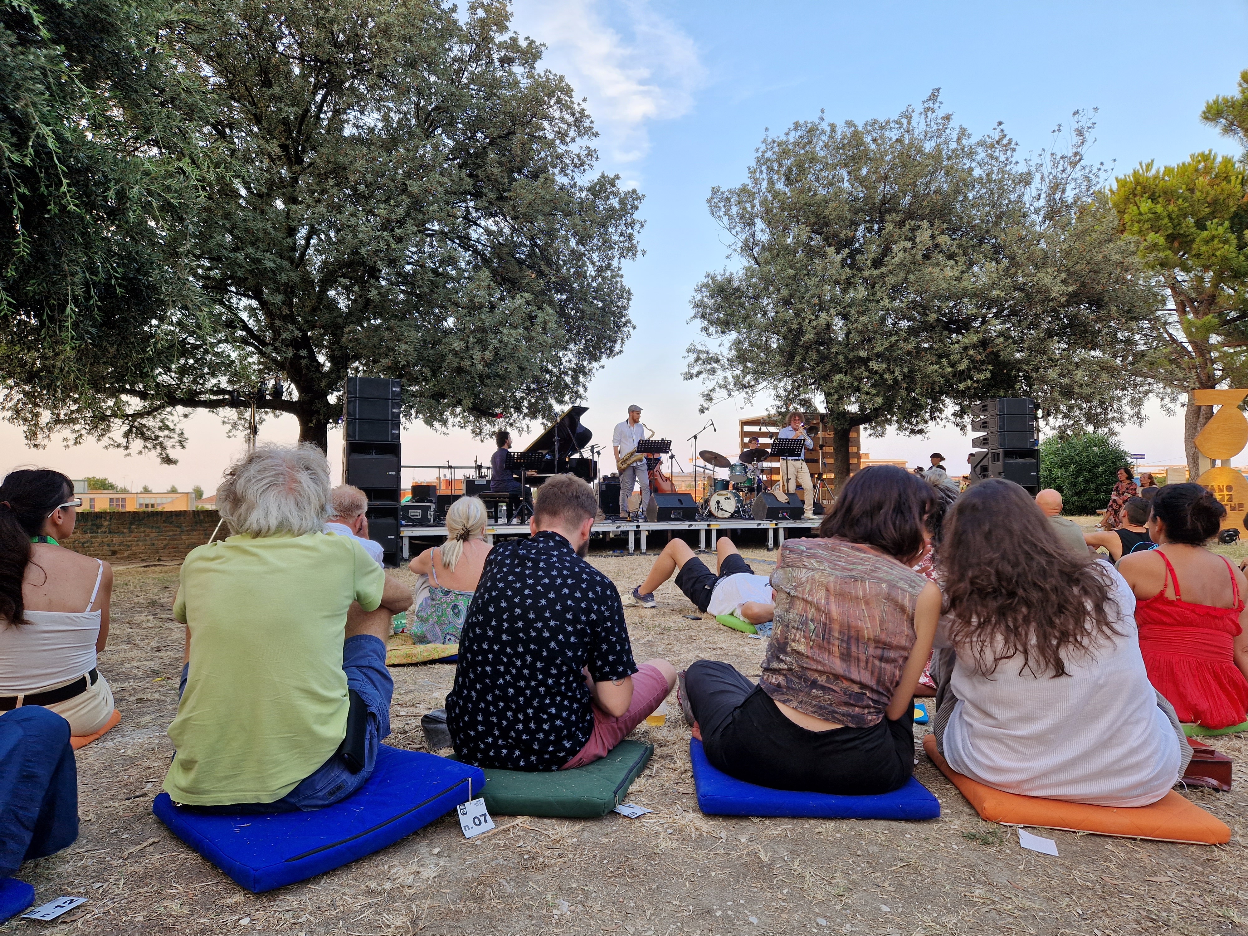 Fano gli offre una location molto suggestiva come i giardini antistanti la Rocca Malatestiana, con un bel prato e molti cuscini per accogliere gratuitamente il pubblico del Green Jazz Village, quartiere generale del festival. Il piccolo palco baciato dal tramonto ha molto fascino, ma va anche detto che l’ambiente forse non offre quel raccoglimento e concentrazione che alcune giovani band ancora un poco digiune del mestiere richiederebbero: comunque va notato che la rustica e sportiva platea di anno in anno va facendosi sempre più attenta e meno occasionale. E poi resta pur sempre una gran bella vetrina piuttosto ambita.