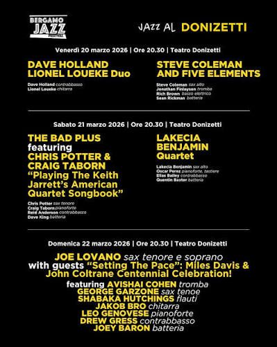 In questo 2026, anno in cui ricorre il centenario della nascita di Miles Davis e John Coltrane, Bergamo Jazz dedica a queste due figure centrali nella storia della musica di matrice afroamericana la propria 47esima edizione, che si svolge dal 19 al 22 marzo.
