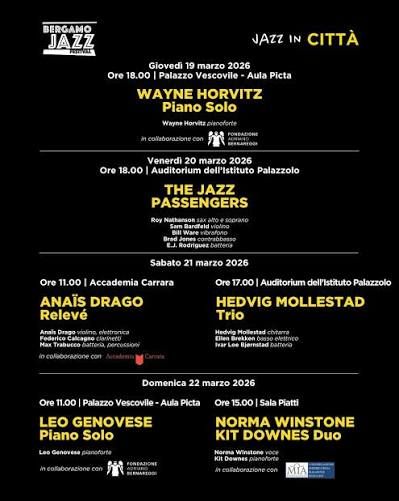 C’è una città italiana che ha fatto del jazz una parte integrante della propria identità culturale, quasi una seconda lingua madre. Quella città è Bergamo, e il suo festival jazz — giunto quest’anno alla 47ª edizione — ne è la prova più eloquente. Dal 19 al 22 marzo 2026, Bergamo risuonerà ancora una volta dei mille linguaggi del jazz, confermandosi festival diffuso, capace di attraversare teatri, musei e luoghi cittadini, portando la musica a diretto contatto con il pubblico e lo spazio urbano.